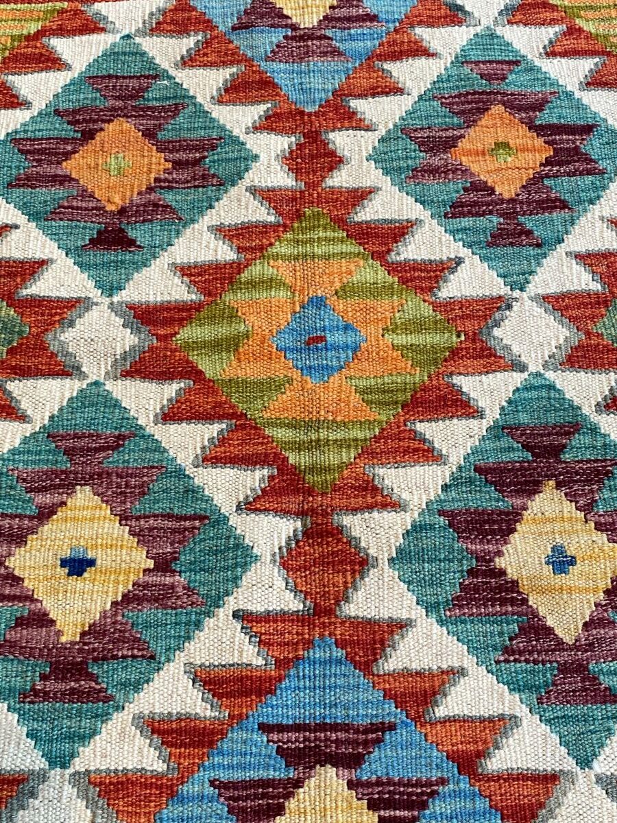 A COLOURFUL CAUCASIAN AFGHAN KILIM (148 X 99 CM)